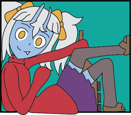 This is an original character I named Luna Oni Martinez Del Rio, depicted in a cute form. I created this design in Adobe Illustrator for my business card and made two versions to provide options.