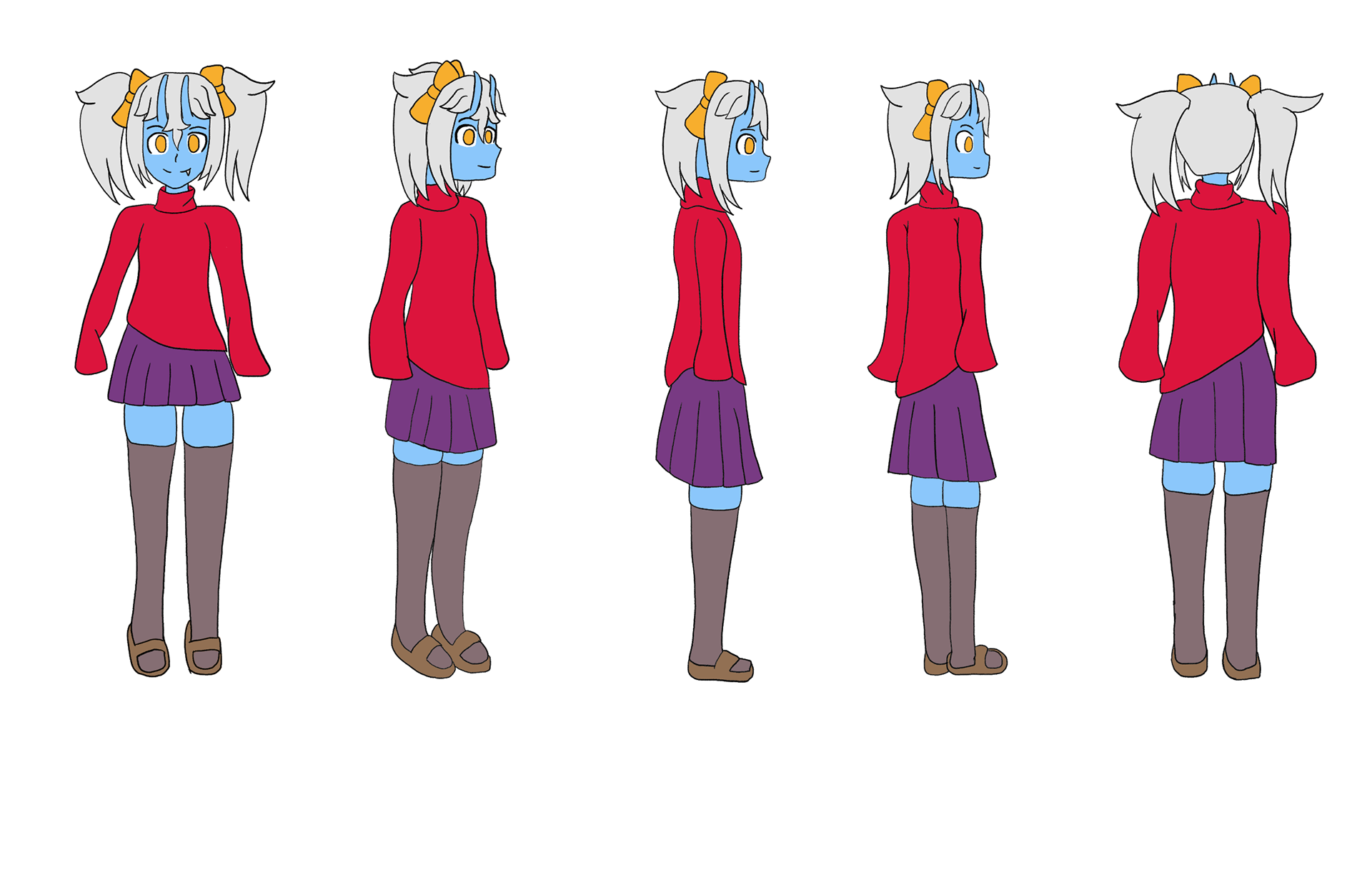 This is an original character created for a character turnaround. This was my first attempt at a complete turnaround consisting of five poses. The process involved using Adobe Photoshop for the poses and the timeline feature for animation.